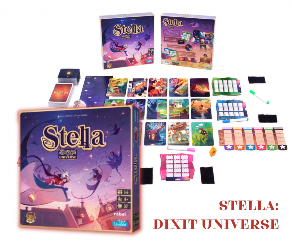 Poszukiwacze gwiazd! Wyruszcie w podróż po nieboskłonie i sprowadźcie do swojego świata nieco światła. Stella to gra rywalizacyjna osadzona w Uniwersum Dixita, w której gracze interpretują ilustracje pod kątem wspólnie wylosowanego hasła. Wybieraj te same grafiki, co inni, aby zwyciężyć! Podejmuj skalkulowane ryzyko, ale uważaj, bo zachłanność może się skończyć Twoim upadkiem w odmęty ciemności.